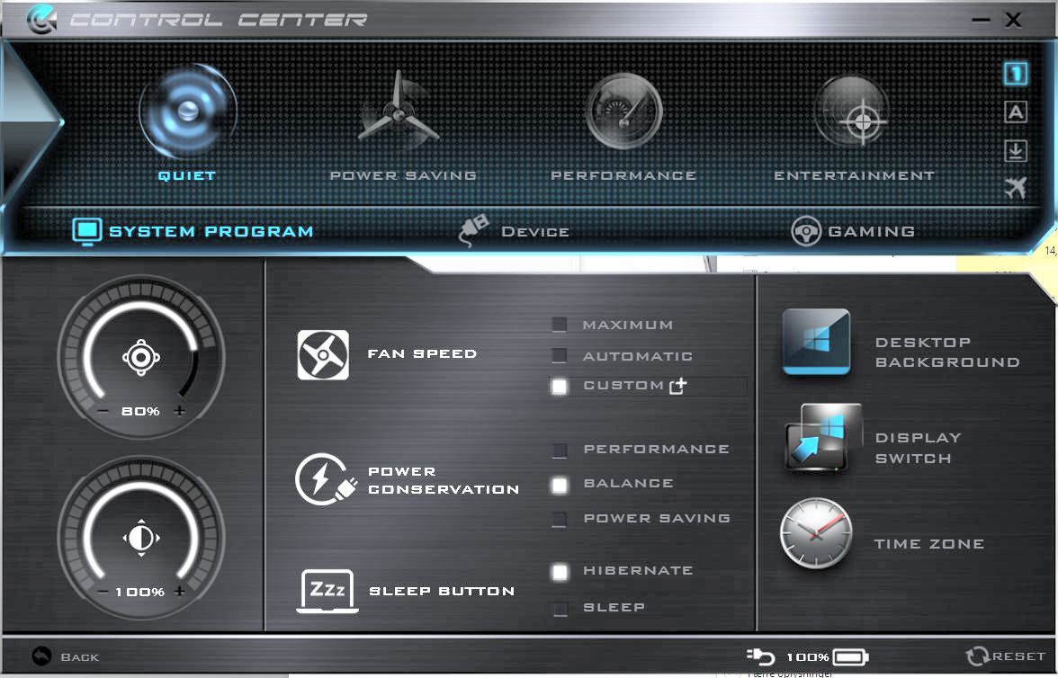 Din ABook leveres med et Control Center, hvor du bl.a. kan stille på blæsernes hastighed: