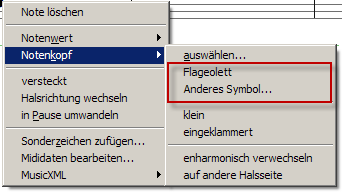 Med genvejstasten [L] kan du, mens du holder museknappen nede på nodehovedet, skifte mellem normal og flageolet-form.