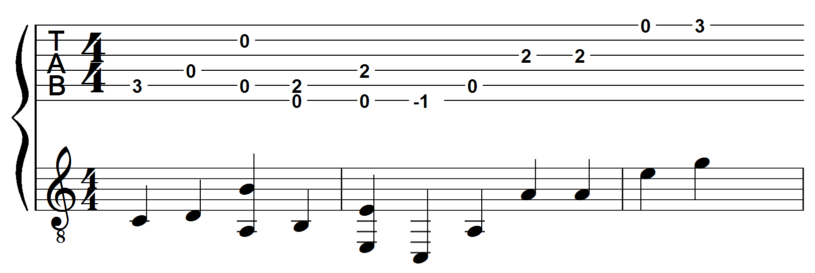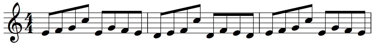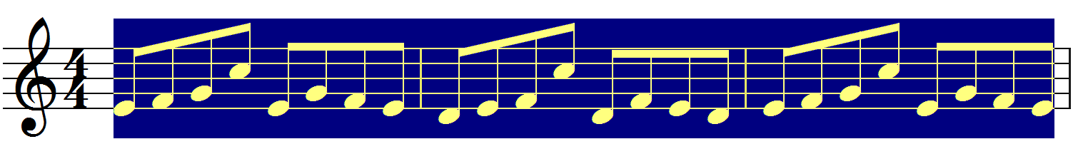 Eksempel 1: Denne ottendedelsrække er standardmæssigt verbalket i 4’er-grupper: