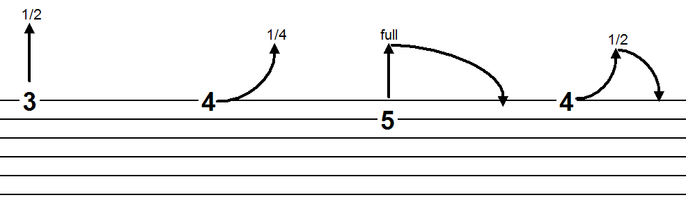 Bends kan flyttes og deformeres ved linjeenderne. Via højreklik-menuen kan bend-typen samt betegnelsen (¼, ½, 1, full…) ændres. Betegnelsen kan også ændres med [Q], mens bend-symbolet er grebet.