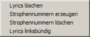 Højreklik-menuen for sangtekster (lyrics) har nu følgende indgange:
