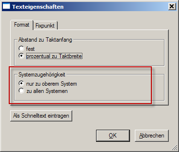 Den kan dog også fastlægges ved oprettelsen af teksten: - Museklik over nodelinjerne → Tekst tilhører alle systemer. - Museklik under nodelinjerne → Tekst tilhører kun det øverste system.