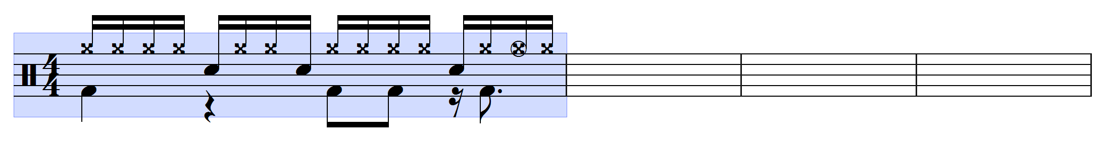 Eksempel: Marker den første takt som taktblok (lyseblå):